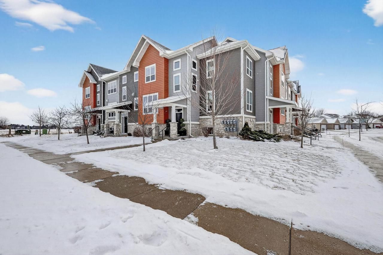 Elegance and style are showcased in the lovely 3 bed, 2 1/2 bath end unit townhouse condo in the Middleton School District! Beautifully appointed with soaring ceilings, dramatic windows, clean architectural lines and open concept. Thoughtfully designed kitchen with white cabinets, quartz counters, kitchen island/breakfast bar, tile backsplash, stainless appliances and separate dining space. Gleaming wood floors and gas fireplace enhance the warmth of the main level great room. Primary suite with tray ceiling, en suite full bath with double sinks and walk in closet. Two additional sunny bedrooms, another full bath and in unit laundry complete the upper level. Updated lighting, paint and carpet throughout. 2-car attached garage. The perfect combination of design, quality and location!