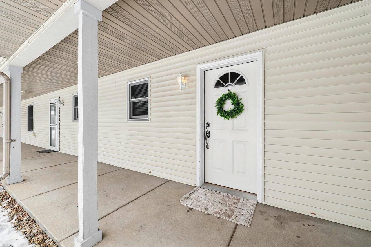 Private Entrance Condo Nestled in the Woods Near Lake Wisconsin. Enjoy peaceful living in this beautifully updated condo surrounded by the natural beauty of Lake Wisconsin. Conveniently located just minutes from I-90/I-94, this home offers the perfect blend of tranquility and accessibility. Step inside to a bright open-concept layout featuring freshly painted walls, new luxury vinyl plank flooring, and updated light fixtures throughout. The spacious design creates a warm and inviting atmosphere, perfect for relaxing or entertaining.This move-in-ready home offers generous storage space, making organization easy. Relax in the sunroom with views of Lake Wisconsin, or welcome guests in the well-appointed main lobby. During the warmer months, unwind outside under the community pergola, ideal for enjoying peaceful summer evenings.